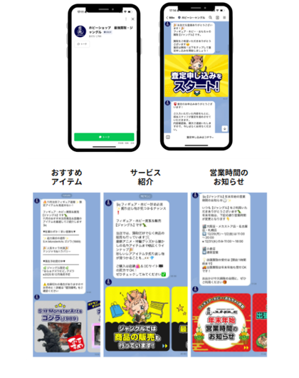 クーポンやキャンペーン配信による来店促進、自動メッセージによる教育・育成、1対1のチャット対応などが可能です。
